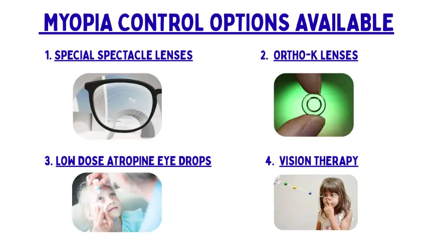 Myopia Control is the set of treatments aimed at attempting to reduce the rate of increase in eye power in children and teenagers. Glasses or regular contact lenses may help your child to see more clearly but do not prevent the eye from gradually becoming more minus over time.